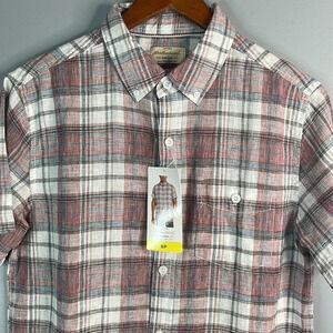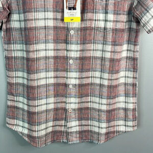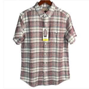 WEATHERPROOF NWT Mens Linen Red Plaid Short Sleeve Button Down Shirt Preppy S