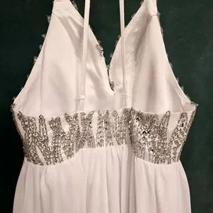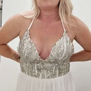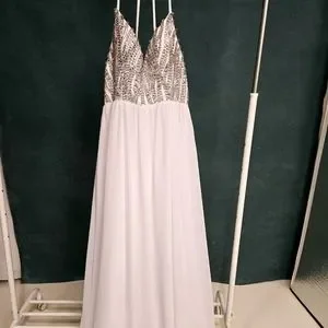 A simply but beautiful wedding dress. I bought for a planned photo shoot which never happened as I stopped being a wedding photographer. It was worn by the original bride and then sat in my studio. There are no tags but I would say this is a size 10 or size 12.