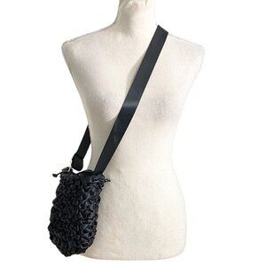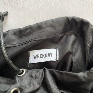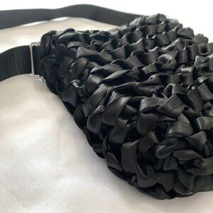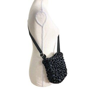 WEEKDAY AMINA BLACK SATIN CROCHET RIBBON BAG