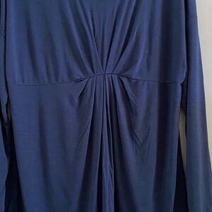 WEEKEND by Suzanne Betro size L blue long sleeve top gathered front