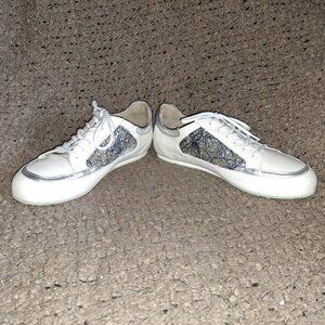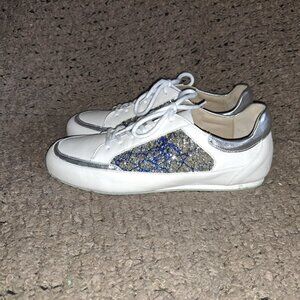 WERNER KERN-Carol-White Leather/Blue/Silver Glitter-Dance Sneakers-Sz 7.5UK/10US