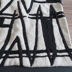 WEST ELM 100% Cotton Cream Black Abstract Embroidered Decor Throw Pillow Sham