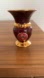 Burgundy colour with gold trim small mini vase. Sticker on the vase says "West Hall". On the bottom the date 2007 is incised, and in gold it says "D'Or Handpainted".