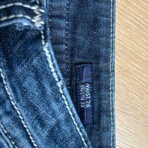 WESTERN - FLORAL RHINESTONE - DARK WASH BOOT CUT JEANS - SIZE 26