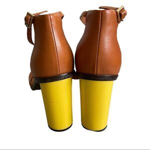 WF WHAT FOR Cognac Leather Yellow Heel Sandals 38