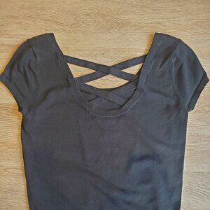 WHBM Black Cropped Top with Criss-Cross Back Detail