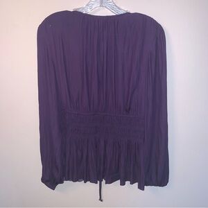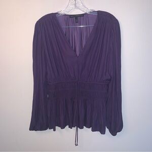 WHBM Deep Purple Silky Peplum Long Sleeve Blouse S