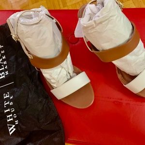 Brown and white platform sandals