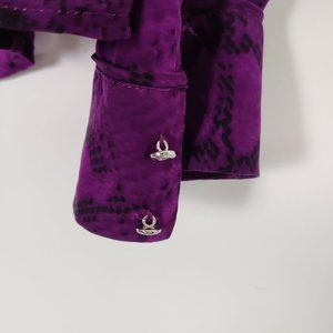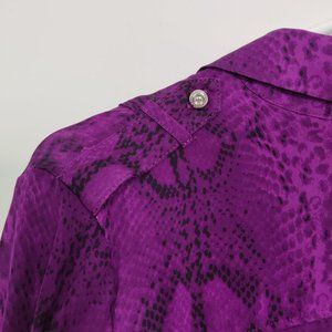 WHBM Women's Blouse Size 12 Silk Purple Black Snake Print Button Down Luxurious