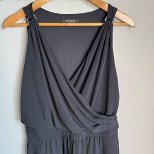 WHBM Women's Sleeveless Faux Wrap V-Neck Romper Black Festival Summer Office