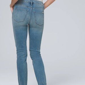 Medium wash denim skinny jeans. Distressed/ripped at knees. Great condition and very comfortable fit. The first 2 photos are for fit reference, not the actual jean. See other photos for Jean details.