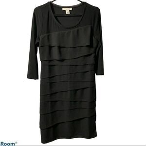 Super comfy BHWM black layered ruffle dress in gently used condition. Fits more like a medium to large.