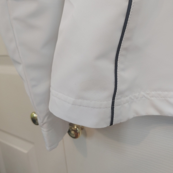 Imperfections: One spot on front of jacket near the zipper, and a mark on the back near the hem as shown - not sure what it is (price reflects)