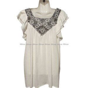 WHITE Cotton Short Sleeve Black Lace Blouse Various Sizes M L XL- NWT