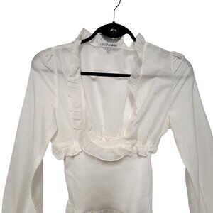 WHITE Cotton Silk Light Frilly Long Sleeve Top VARIOUS SIZES S M L