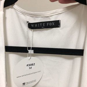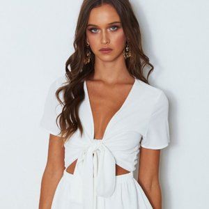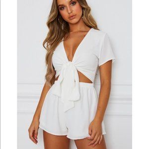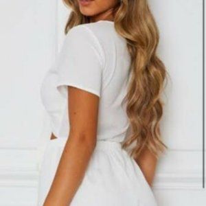 Instant crush playsuit from White Fox Boutique in white size Medium. Wrap around front, elasticized waist, shorts fully lined. Perfect for the summer! Brand new with tags never worn!
