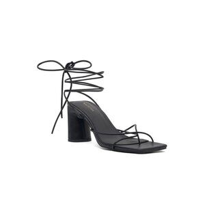 Strappy tie-up black heeled sandals