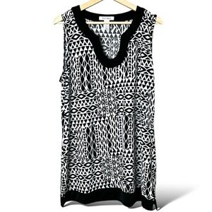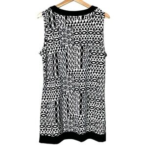 WHITE HOUSE BLACK MARKET Easy Care Sleeveless Black White Geometric Print Top XL