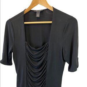 WHIT HOUSE BLACK MARKET Front Ruched Scoop Neck Fitted 3/4 Sleeve Top S