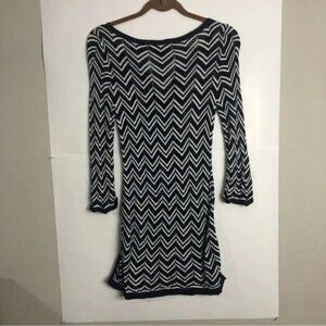 WHITE House Black Market Bodycon Dress XS Blue White Chevron Design
