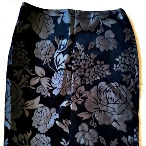 White House Black Market skirt in black roses brocade