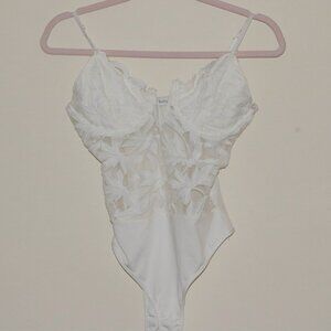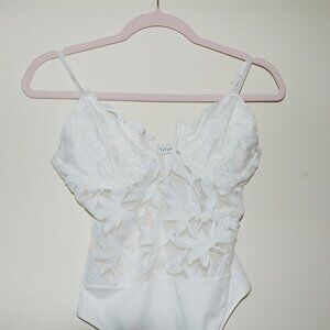 Torso is all lace and sheer and looks beautiful contrasting with all skin tones.
