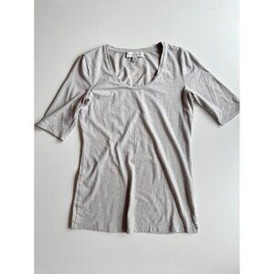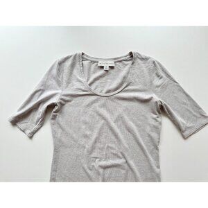 WHITE + WARREN Grey Cotton Modal Jersey Scoop Neck Half Sleeve T-Shirt, Size XS