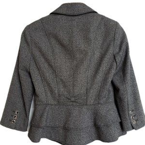 High fashion blazer with great attention to detail everywhere from the collar, lapel, front and back. Whoever designed this is a fashion genius! This blazer would work well in a business setting, but also with jeans.