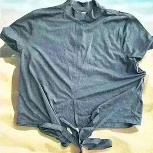 1. Slip on this mock neck tee for your morning meditation and beyond. The ties wrap around your waist and knot in the back to keep it comfy and casual