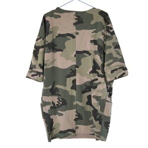 Excellent condition, no rips or stains. Raw hem. 2 side pockets. Camouflage has sparkly glitters on the black prints. Made in Italy