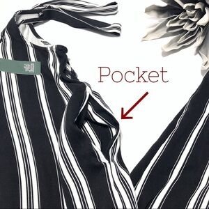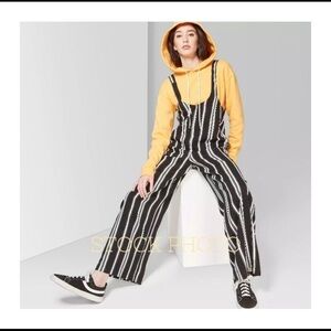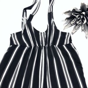 • Dress this adorable sleeveless black & white striped jumpsuit up or down