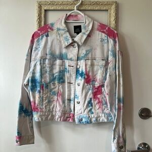 WILD FABLE | Pink and Blue Jean Jacket with Full-Length Sleeves