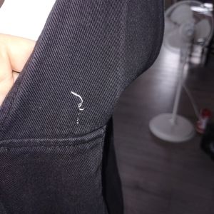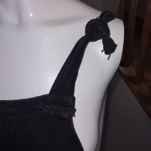 Super cool black denim pinafore. please note pic, label has some white thread on back. Easy to remove I would think. bin 9