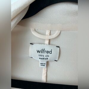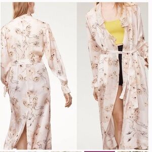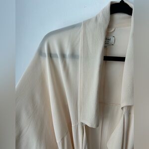 This is a robe-style silk duster/jacket with a shawl collar. It’s made with drapey, matte 100% silk. This is an archive piece from Aritzia! They don’t make them like this anymore. Very similar to the “Le Fou Mercier Robe”.