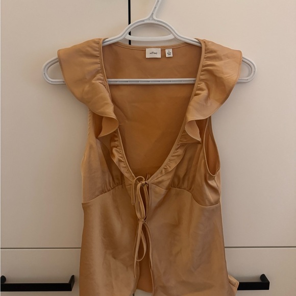 Wilfred size small blouse. Colour is a beautiful soft peach. Worn once. Excellent condition. Perfect for vacations & summer.