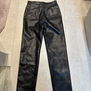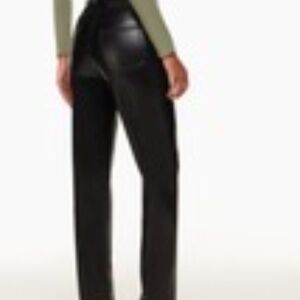 These are high-rise straight-leg pants with five-pocket styling and a universally flattering fit. They’re made with our innovative Vegan Leather that looks and feels like the real thing. They have an authentic drape and a soft sheen that feels right from day one.