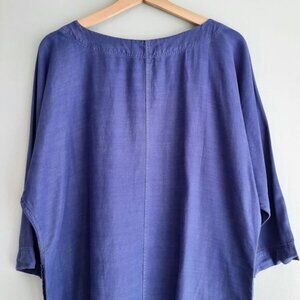 • Dolman 3/4 sleeve scoop neck pull-over dress in blue with to side pockets.