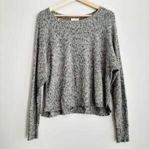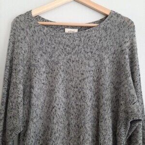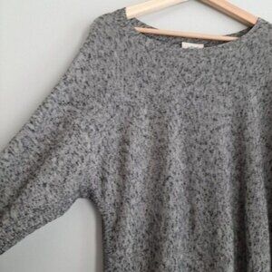 • Long sleeve scoop neck fine knit pullover sweater in marled grey with dolman style sleeves. #52962