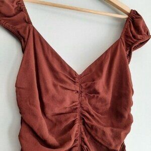 WILFRED Aritzia Veda Ruched Mini Dress Burgundy Brown Sz 6