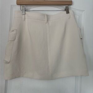 This is a high-waisted micro cargo skirt with side snap-closure pockets. It’s made with Crepette™ — Wilfred’s iconic crepe fabric famous for its subtle texture and breezy, effortless drape. It’s sourced from an innovative Japanese mill.
