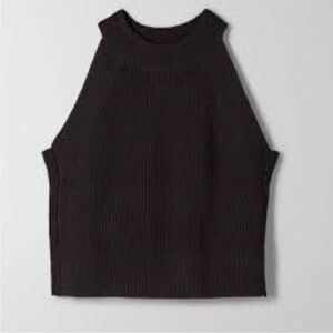 This is so late 90s/early 00s I can’t handle it. A little bit cropped but not belly-baring cropped. Solid, high quality sweater-like cable knit that has good drape to it. Not itchy at all. Apron-style (sort of halter) neckline that would look so good peeking out from the neckline of a blazer.