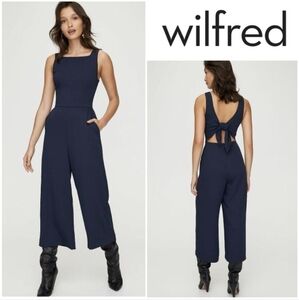 WILFRED Ecoulement Jumpsuit Wide Leg Square Neck Navy Blue 0 Aritzia