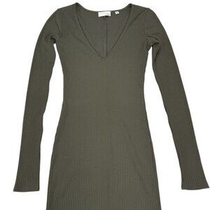 WILFRED FREE Aritzia Rocio Ribbed Knit Midi Dress Moss Green Sz XXS