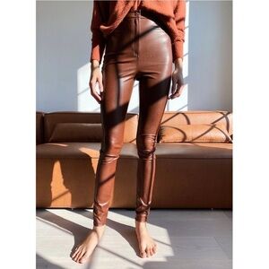 WILFRED FREE | Charm Pant Vegan Leather Skinny Size 00 Patina Brown Aritzia