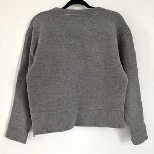 Elevate your casual wardrobe with this stylish and cozy crew neck sweater featuring a chic heathered grey pattern. Made of 100% cotton and featuring a side zip on the left side.