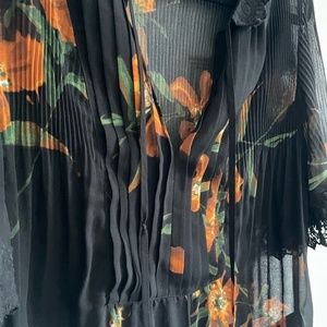 WILFRED Matthieu Pleated Floral Top with Lace Trim