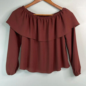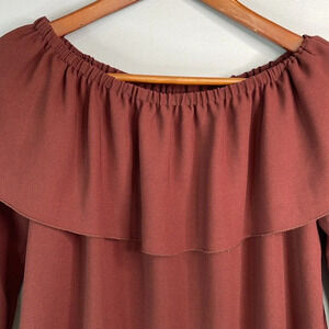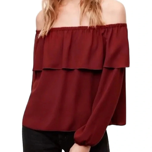 WILFRED Morel Off The Shoulder Blouse Burgundy Ruffle Elastic Balloon Sleeve XXS