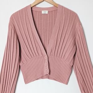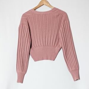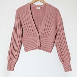 WILFRED New Plunge Front Cardigan Wool Sweater Mauve Mousse Pink ARITZIA S