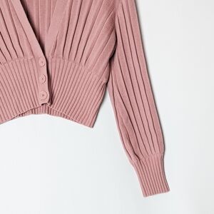 Café au lait and croissant not included. We've redesigned this cropped cardigan for an even more flattering fit. It has a deep V-neckline and volume in the sleeves. It's made from a lightweight blend of extra-fine merino wool and cotton.