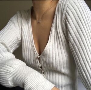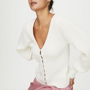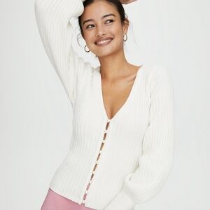 WILFRED Pearl Cardigan Sweater Oak White Ribbed Wool Cotton XXS ARITZIA
